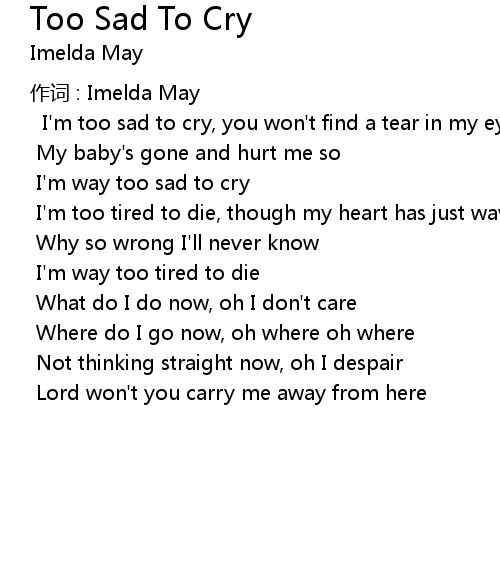| I' m too sad to cry, you won' t find a tear in my eye | |