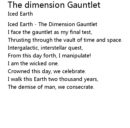 | [00:07.73] | Iced Earth - The Dimension Gauntlet |