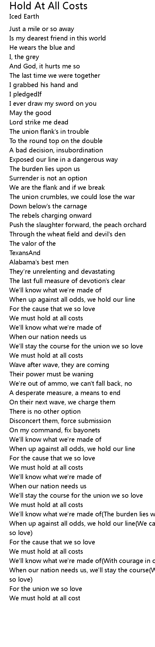 When up against all odds, we hold our line(We can't fail)(For the cause that we so love) |