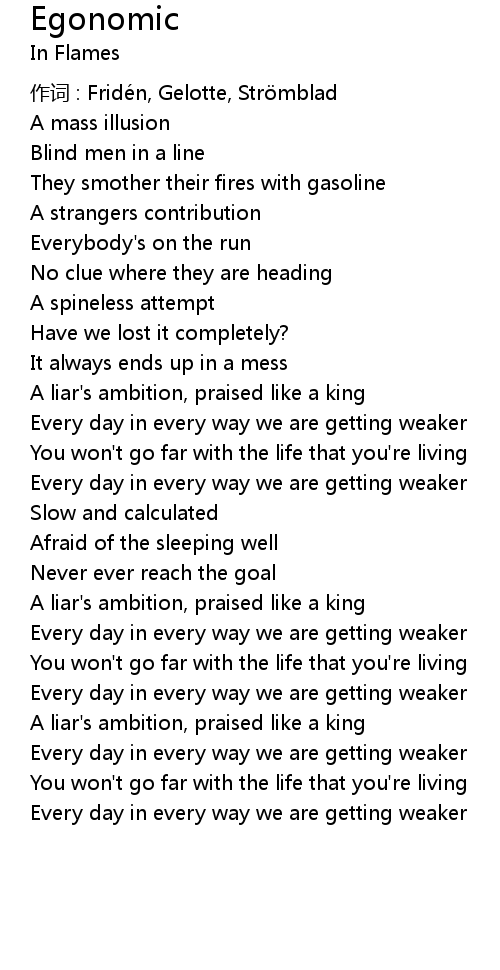 | 作词 : Fridén, Gelotte, Strömblad | |