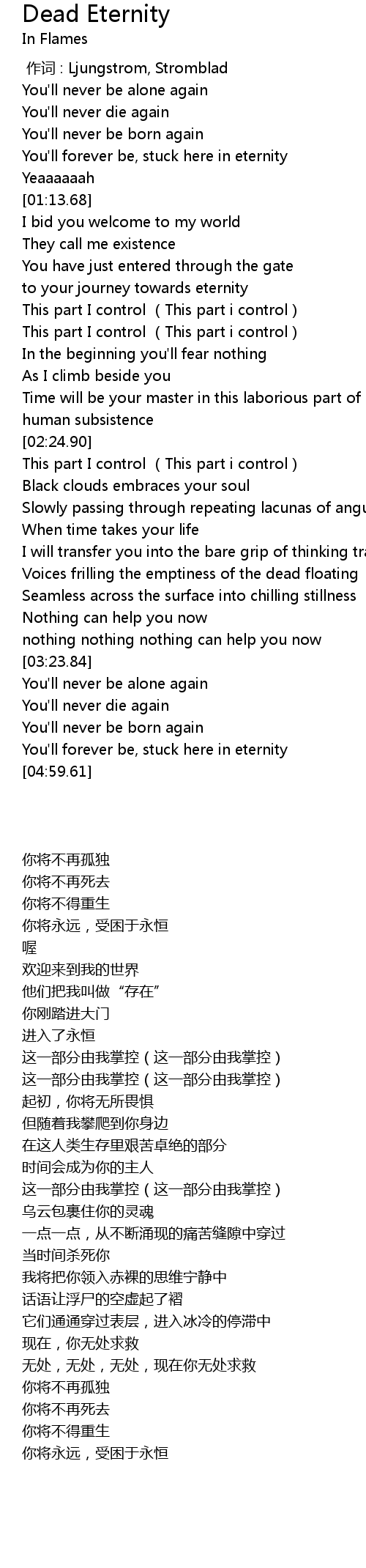 | [01:02.73] | You'll forever be, stuck here in eternity |