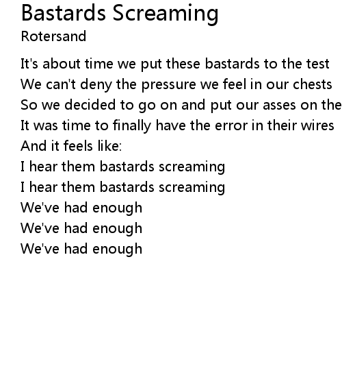 | I hear them bastards screaming | |