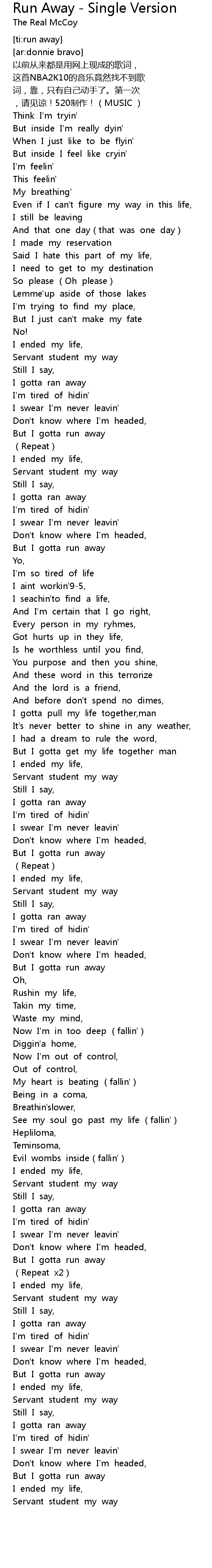 | [03:28.65] | But I gotta run away |