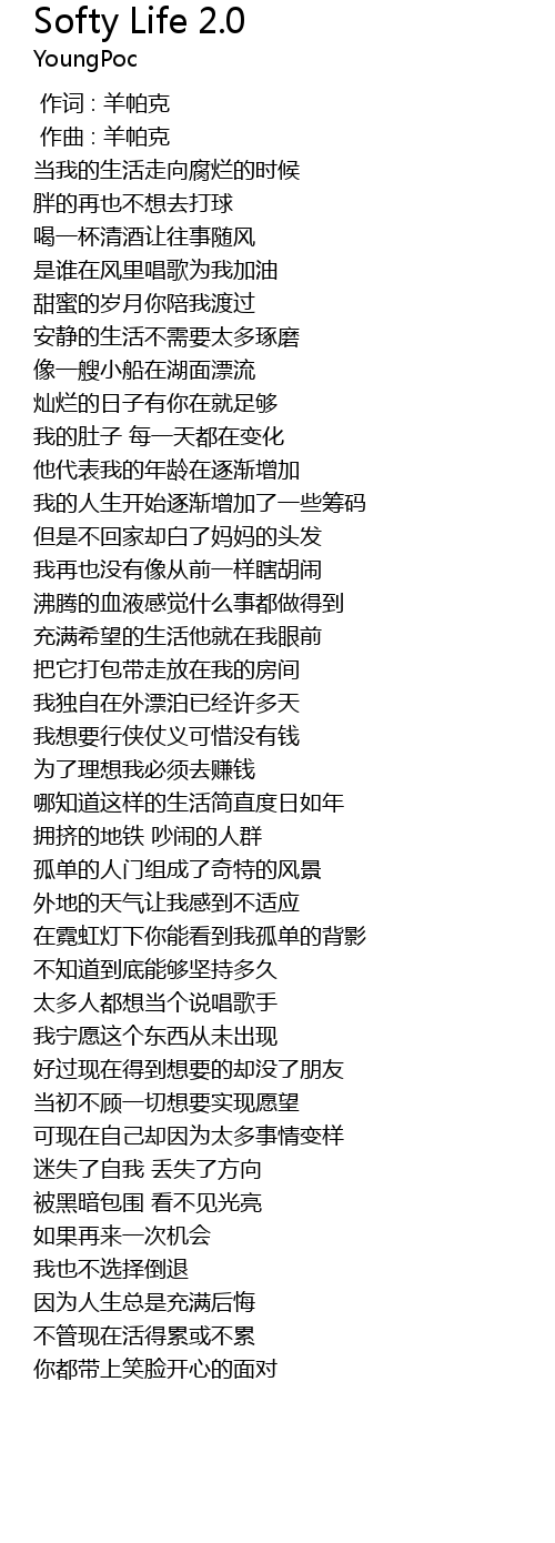 | [00:00.000] | 作词 : 羊帕克 |