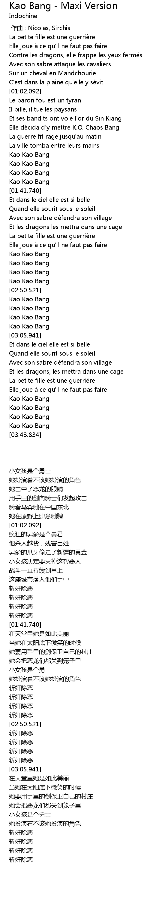 | [02:35.501] | La petite fille est une guerriè re |