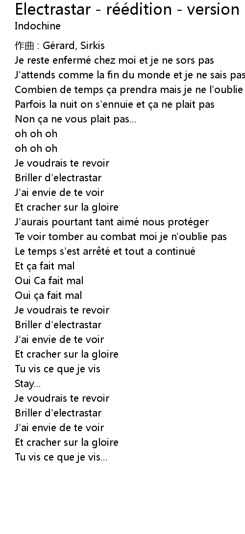 | Song | Electrastar - réédition - version CD |