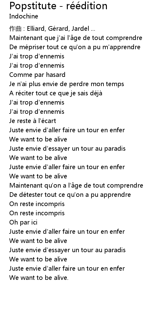 | J' ai trop d' ennemis | |