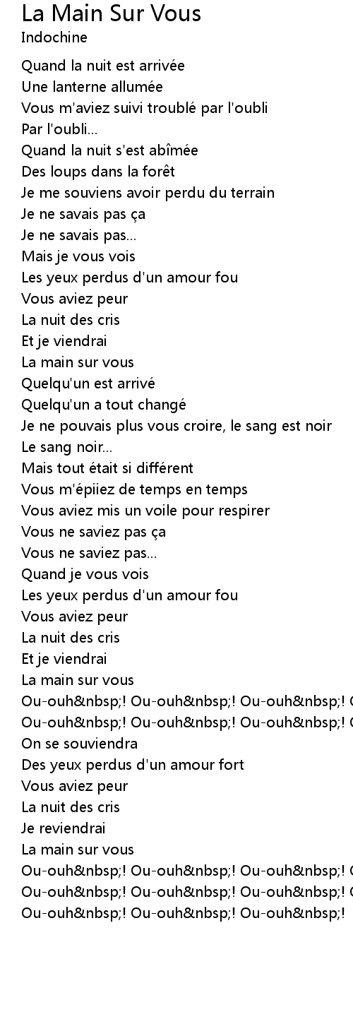 | Song | La Main Sur Vous |