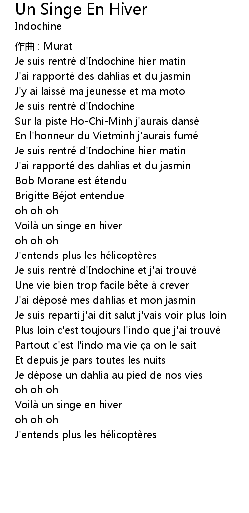 | Je suis rentre d' Indochine et j' ai trouve | |