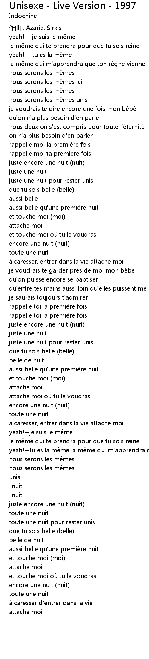 | je voudrais te dire encore une fois mon bé bé | |