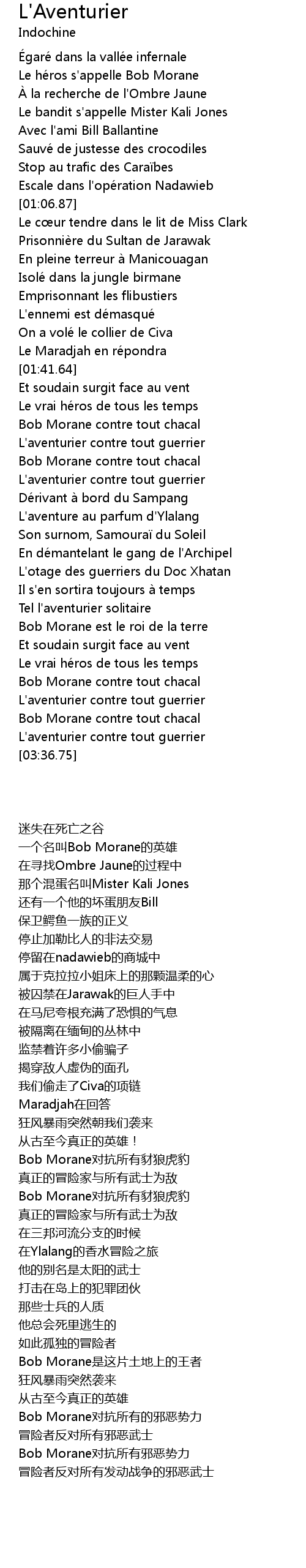 | [03:33.09] | L' aventurier contre tout guerrier |