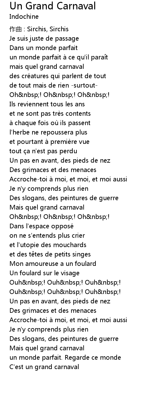 | Song | Un Grand Carnaval |