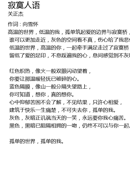 | 作词 : 向雪怀 | |