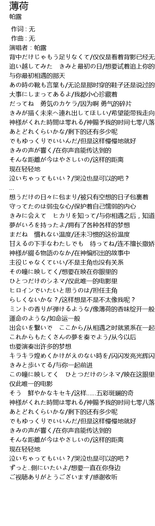 | Song | 薄荷 |