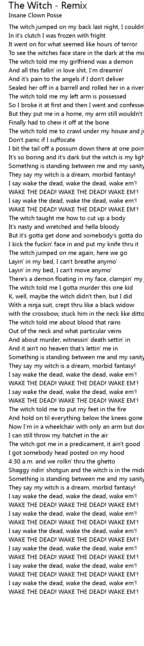 The witch told me I gotta murder this one kid |