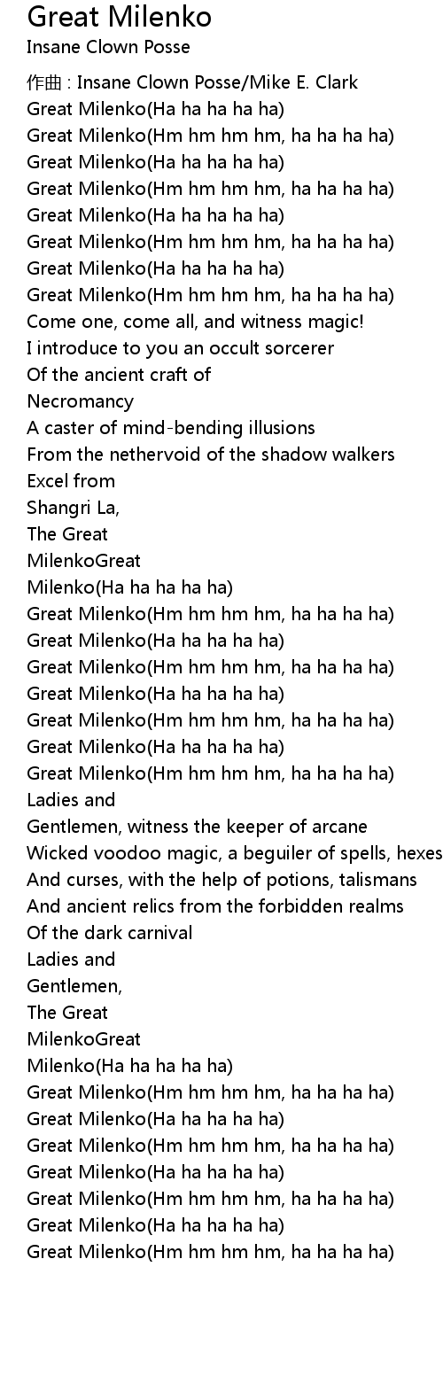 | Great Milenko(Ha ha ha ha ha) | |