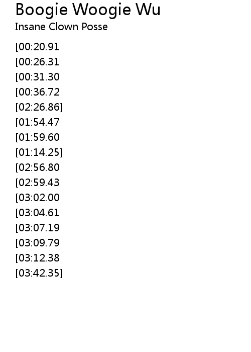 | [03:20.18][02:56.80][02:04.87][00:52.06] | Boogie Woogie Dance in the party |