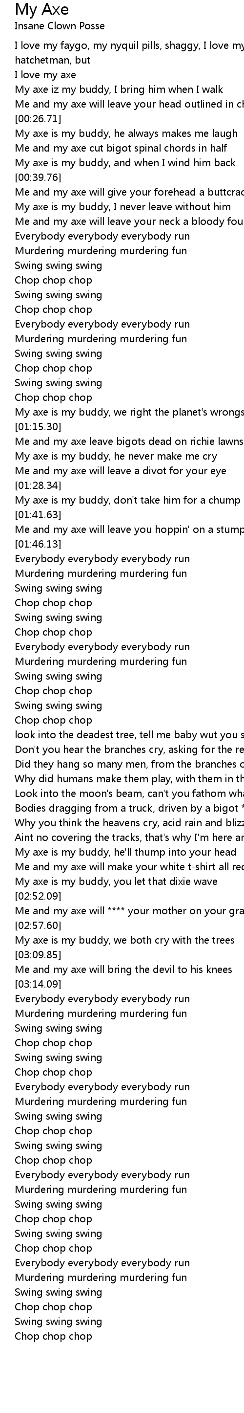 Me and my axe leave bigots dead on richie lawns |