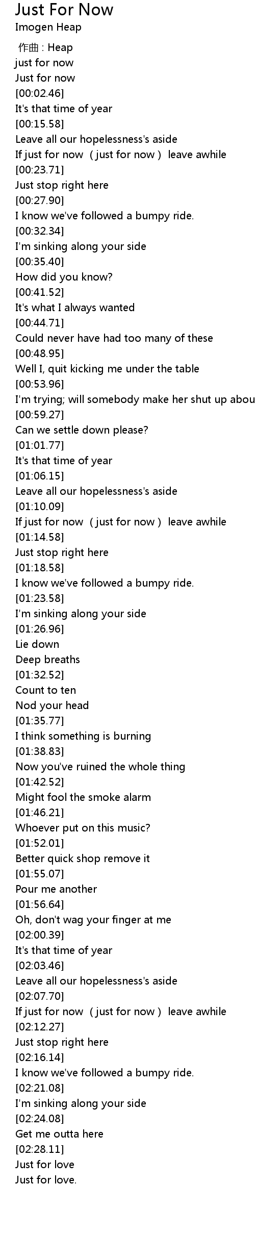 | [00:19.40] | If just for now (just for now) leave awhile |
