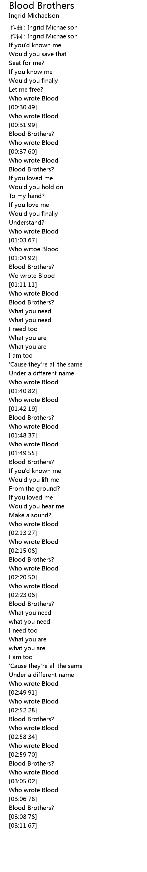 | [00:01.00] | 作词 : Ingrid Michaelson |