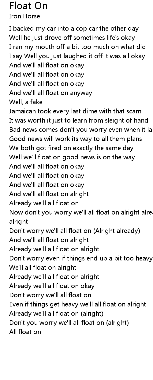 Now don't you worry we'll all float on alright already we'll all float on alright |