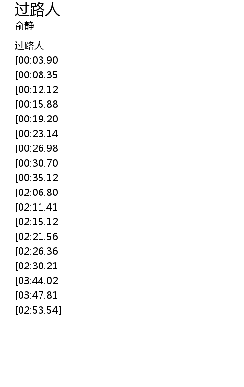 | [03:55.22][03:47.81][02:48.02][02:40.12][01:17.65] | 当他是过路人 |