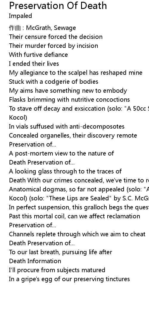 | Song | Preservation Of Death |