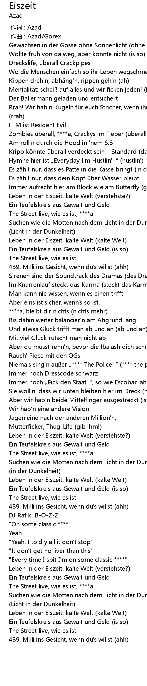 | [00:50.92] | Leben in der Eiszeit, kalte Welt (verstehste?) |