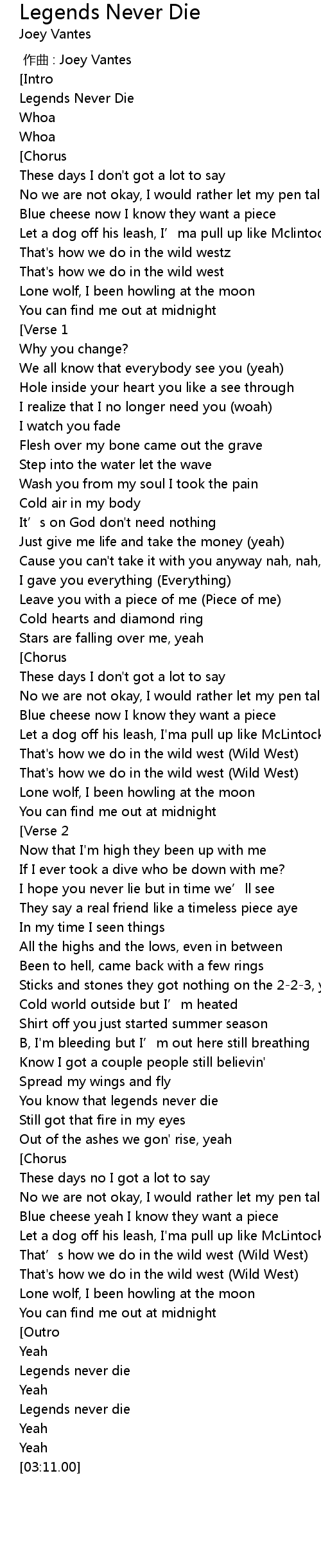 | [03:01.48] | Legends never die |