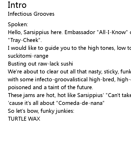 We're about to clear out all that nasty, sticky, funky, junkie-wax out your ears with some infecto-groovalistical high-bred, high-octane, non-culprit jams past poisoned and a taint of the future. |