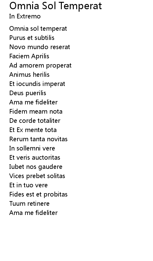 | Song | Omnia Sol Temperat |