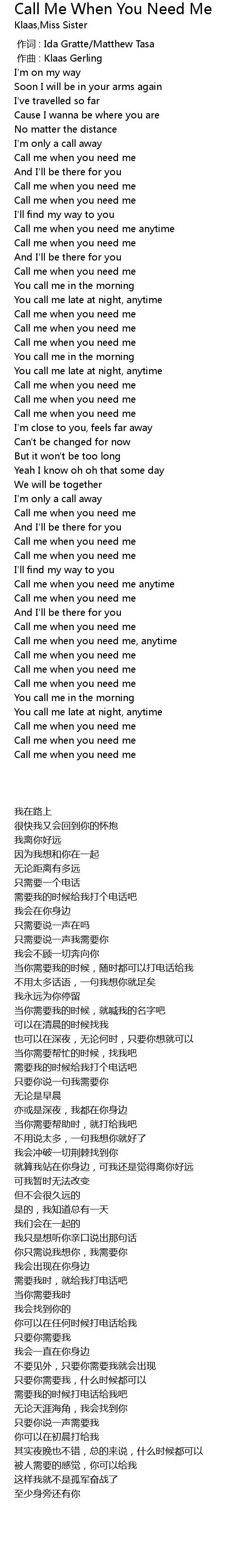 | [02:28.71] | Call me when you need me |