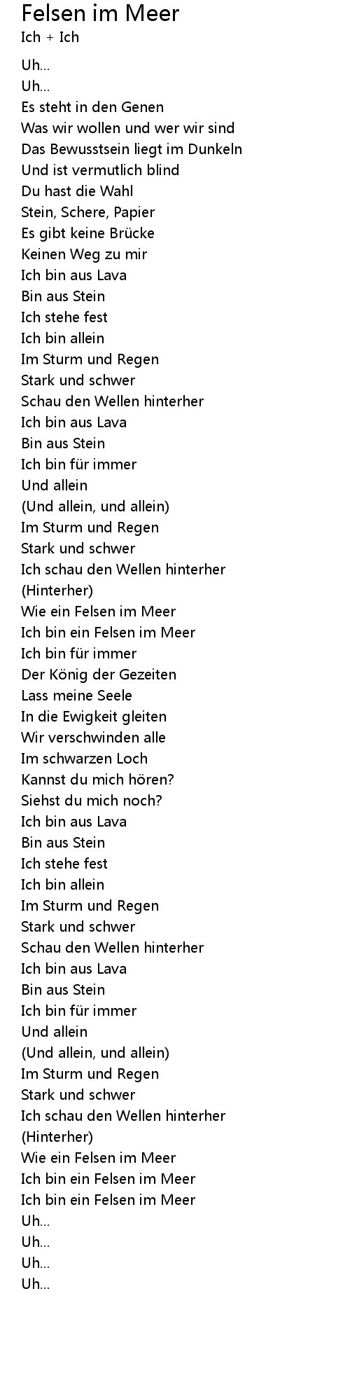 | Ich bin ein Felsen im Meer | |