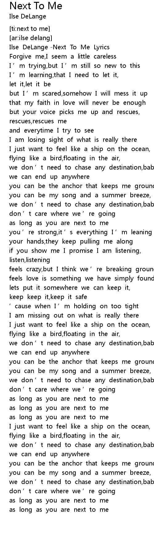 | [00:06.50] | Ilse DeLange -Next To Me Lyrics |