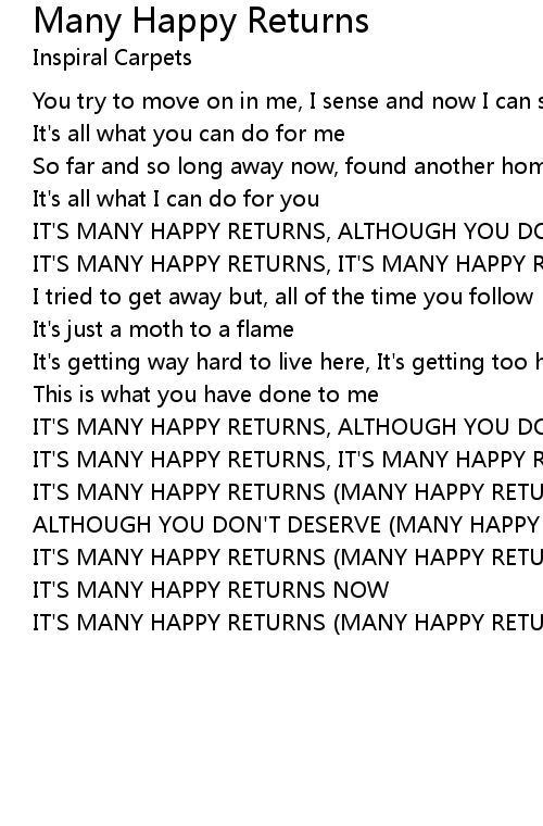 IT'S MANY HAPPY RETURNS, IT'S MANY HAPPY RETURNS NOW |