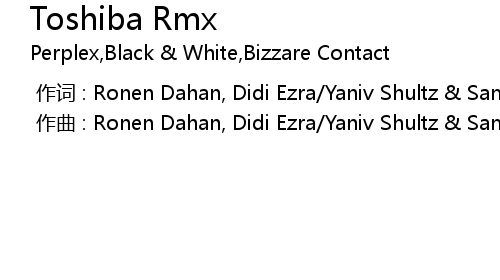 | [00:00.000] | 作词 : Ronen Dahan, Didi Ezra/Yaniv Shultz & Samuel Wallerstein |