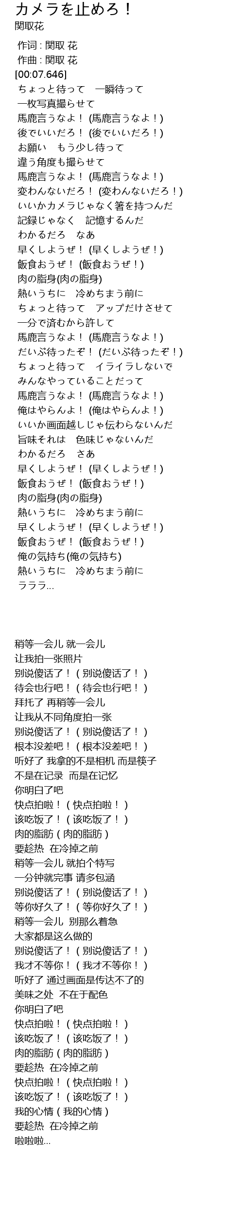 | Song | カメラを止めろ! |