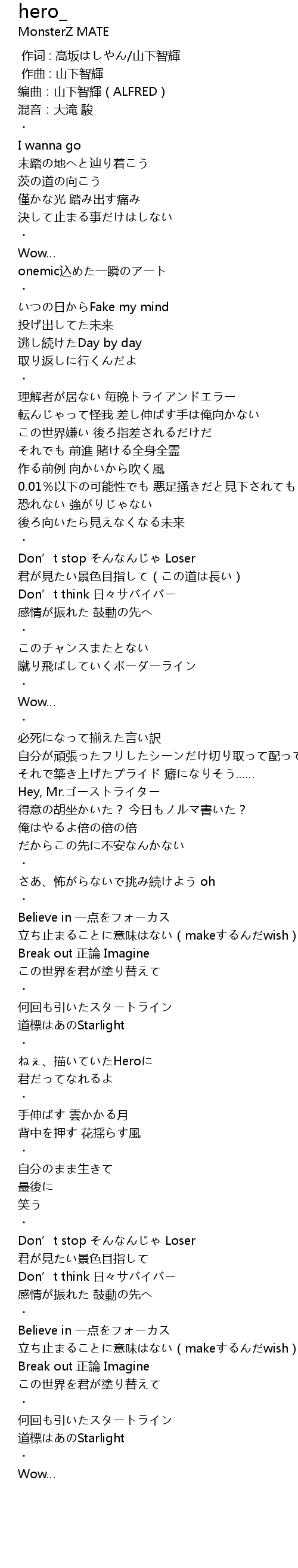 | [02:54.535] | Don’t stop そんなんじゃ Loser |