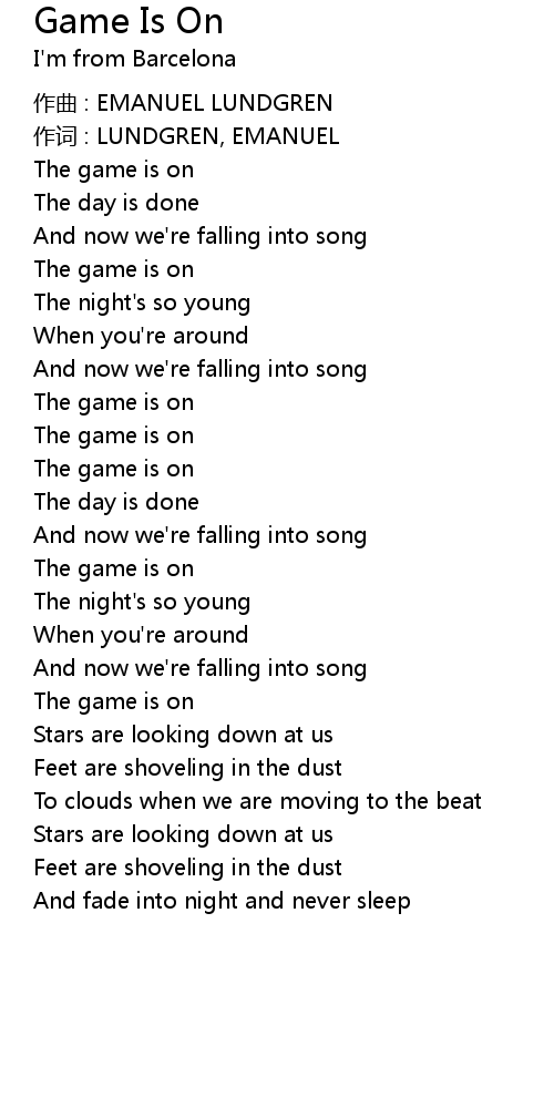 | Song | Game Is On |