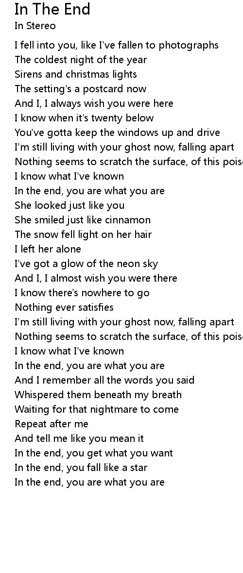 In the end, you fall like a star |