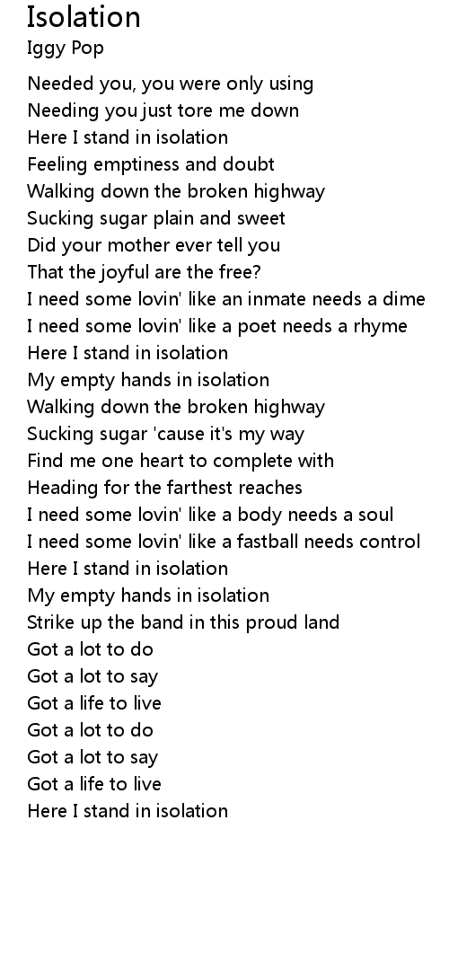 Here I stand in isolation |