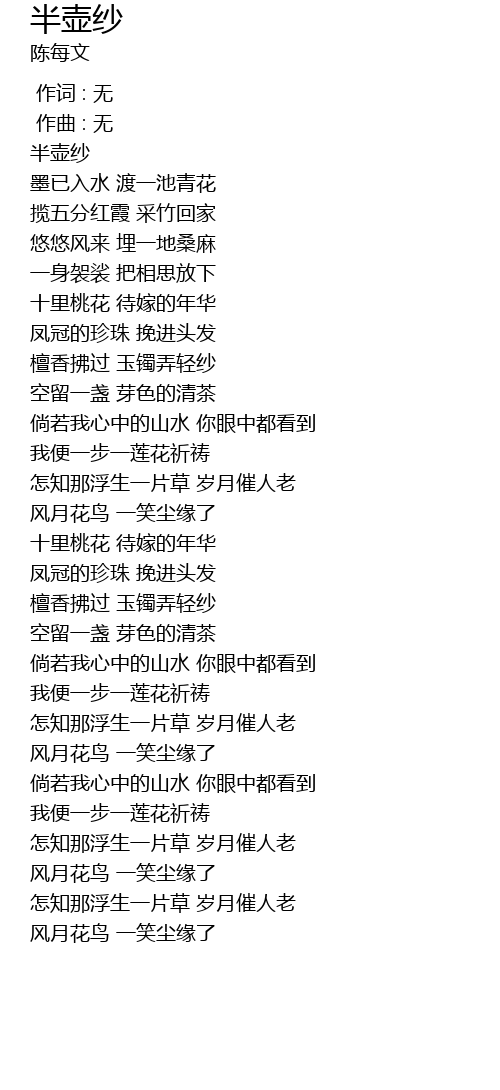 | [00:24.891] | mo yi ru shui du yi chi qing hua |