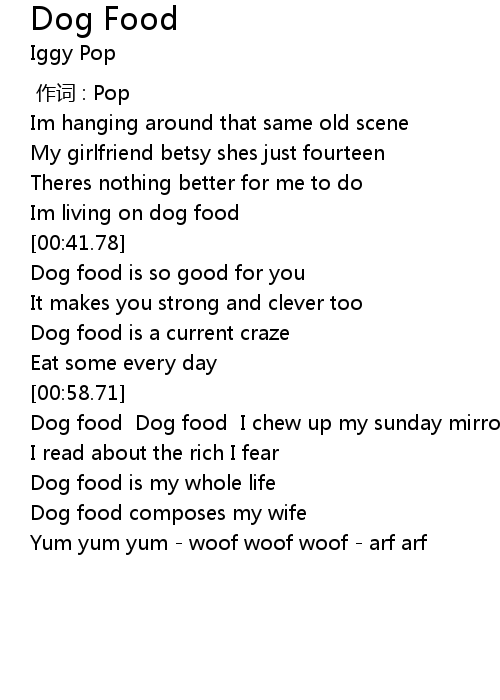 | [01:00.02] | Dog food Dog food I chew up my sunday mirror |