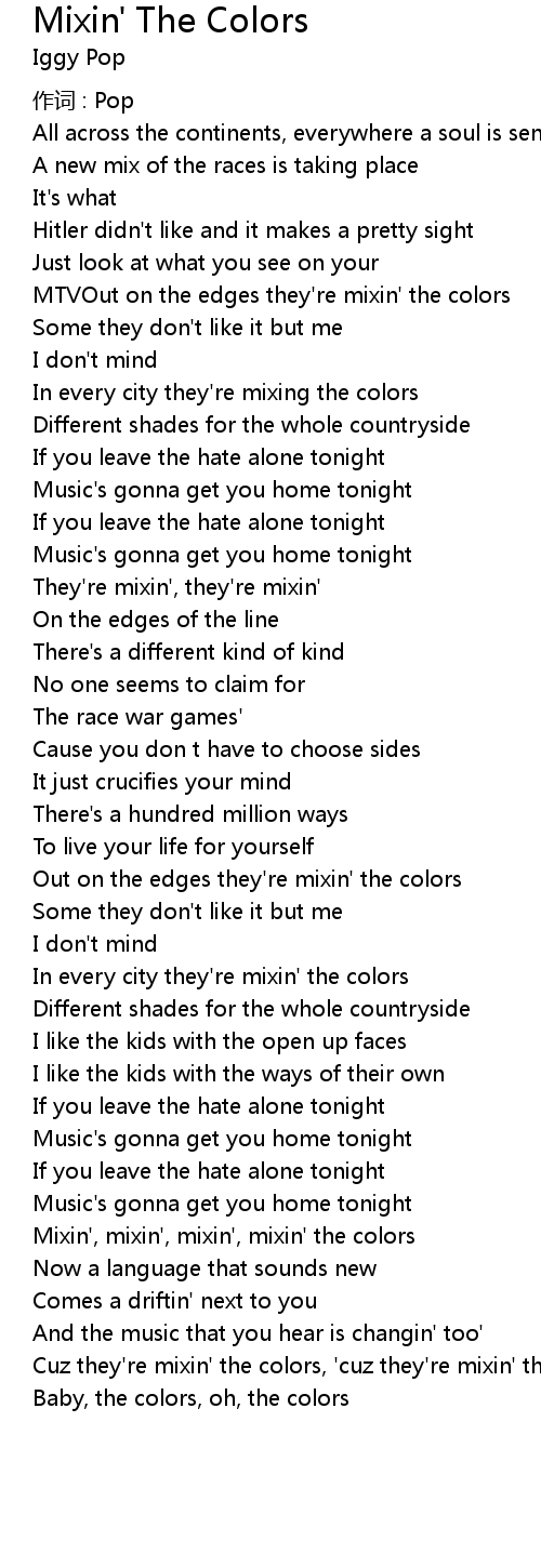 | Cuz they're mixin' the colors, 'cuz they're mixin' the colors | |