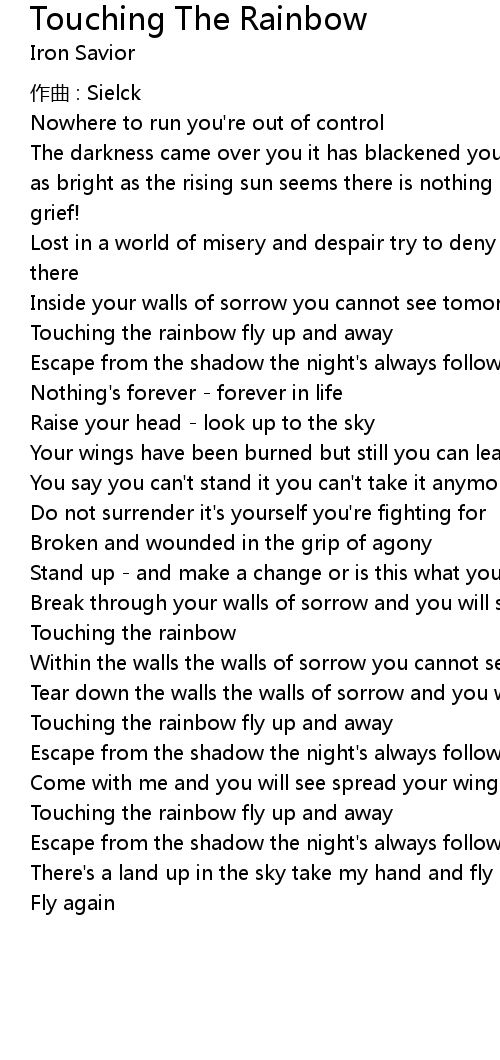 | Song | Touching The Rainbow |