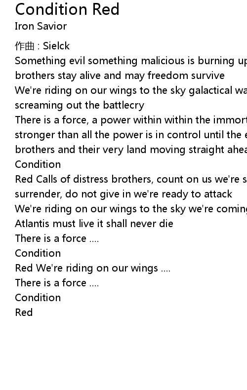 | Red Calls of distress brothers, count on us we' re standing back to back do not surrender, do not give in we' re ready to attack | |