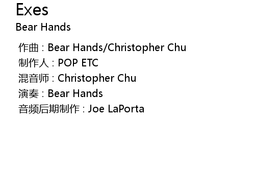 | [00:00.000] | 作曲 : Bear Hands/Christopher Chu |