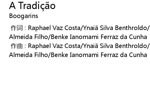 | [00:00.000] | 作词 : Raphael Vaz Costa/Ynaiã Silva Benthroldo/Fernando De Almeida Filho/Benke Ianomami Ferraz da Cunha |