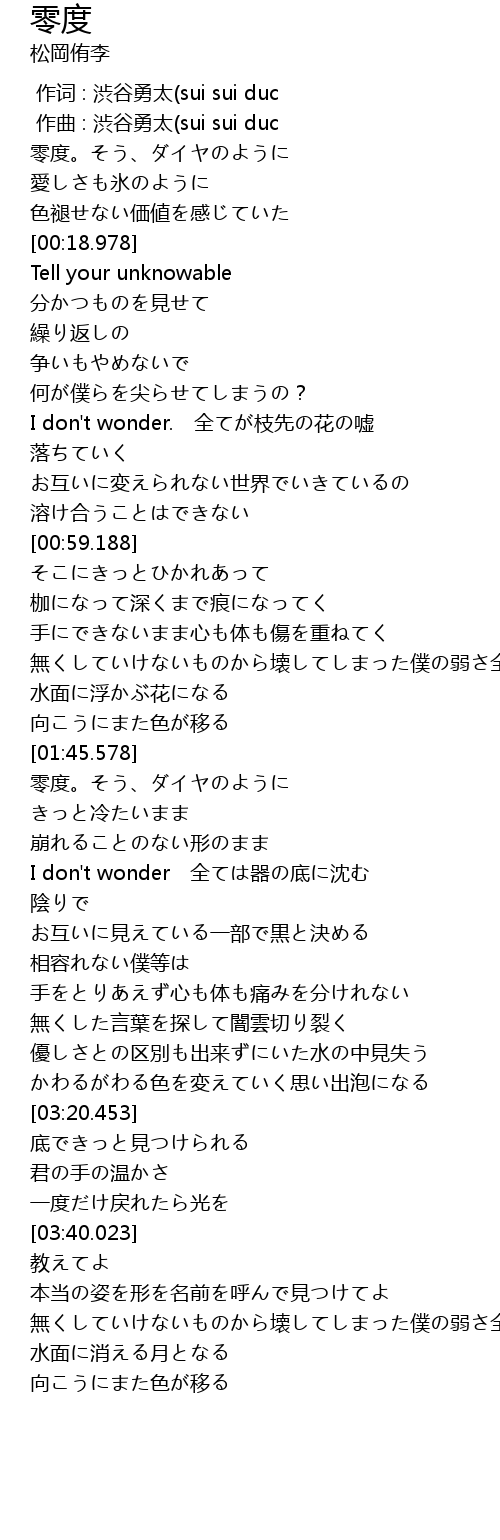 | [00:00.000] | 作词 : 渋谷勇太(sui sui duc |