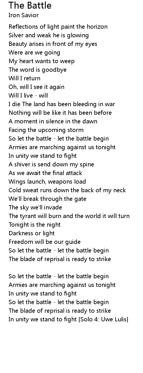In unity we stand to fight - to fight! [Solo 1+2: Piet / Solo 3: Kai] |